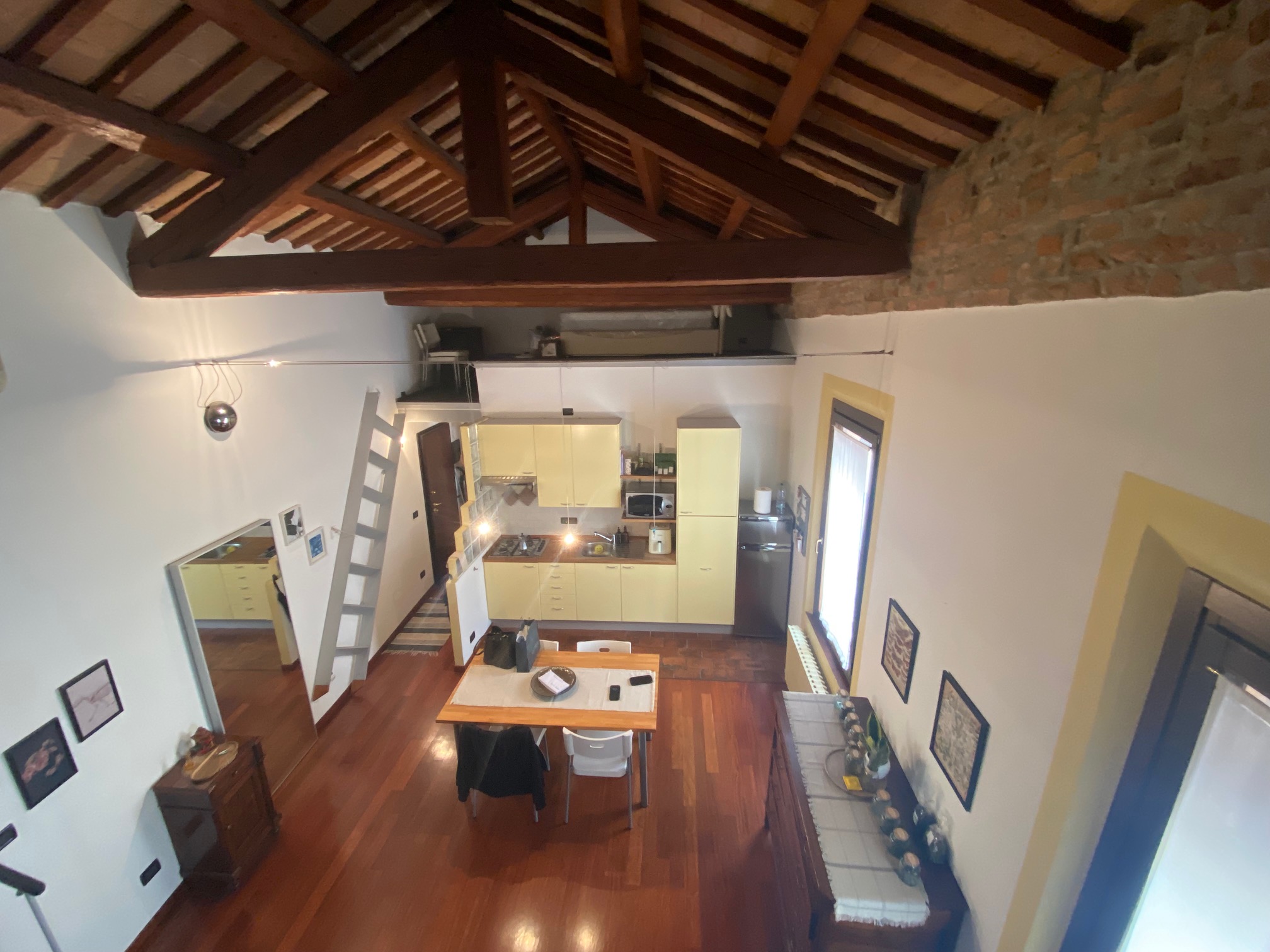 Splendida soluzione abitativa nel cuore della Ferrara più antica, restaurato sapientemente per riportarlo in perfette condizioni ai giorni nostri, aggiungendo un tocco di modernità sfruttando sapientemente gli spazi con soppalco che ne esalta la bellezza delle finiture di un tempo riportate ai giorni nostri . Unico nel suo genere, sorprende per l’ampio volume e la luminosità , con doppio soppalco a vista utilizzato per ricavare la zona notte, e una seconda letto per necessità . Abitazione al secondo ed ultimo piano, tutti gli ambienti sono illuminati con finestre a luce naturale. Ristrutturato ex novo nel 2000, vi garantisce tutti i confort attuali conservando il fascino del contesto storico con elevato livello di finitura. Si compone di ingresso, bagno finestrato, ampia zona a giorno con cucina a vista e termocamino, zona soppalco per la stanza da letto, secondo soppalco per eventuali ospiti, all’esterno comoda lavanderia con locale caldaia e pratico stenditoio . Immobile con elevato livello di finiture, pari al nuovo, vi garantisce una gestione autonoma ed efficiente, è infatti dotato di utenze proprie, condizionatore. Acquisto senza vincolo della soprintendenza, modeste le spese condominiali, bassissimi i consumi, serramenti in legno termici, pavimentazione di pregio. Disponibile in pochi mesi dal preliminare. Si vende con arredo cucina, letto , soggiorno e arredo bagno. E’ un ottimo investimento non solo per la propria residenza ma anche per la sua  potenzialità di essere locato. La vista è meravigliosa in pieno centro storico, e spostarsi con l’auto, riuscire a parcheggiarla, risulterà comunque agevole .  Per ulteriori informazioni e visite sul posto Stile Libero Immobiliare via Borgo dei Leoni n. 29 – Ferrara – Tel. 0532-242754 .