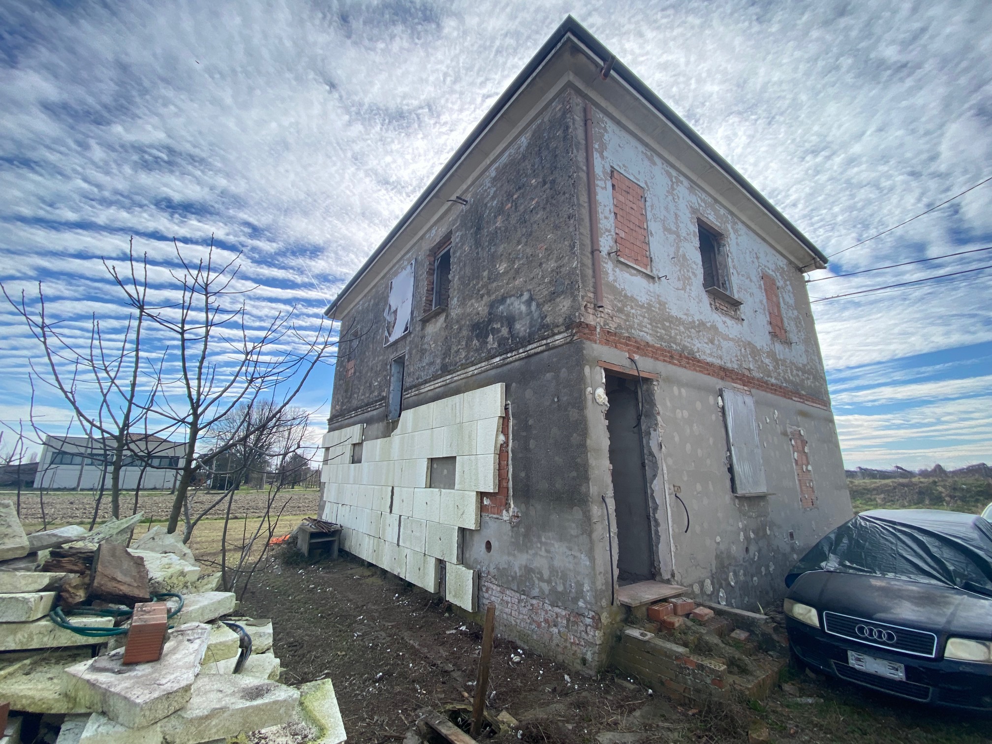 Stile Libero Immobiliare propone casa singola predisposta per realizzare una unità abitativa al piano terra e una indipendente al piano primo ciascuna di circa 100 mq, o unica unità abitativa di 200 mq oltre a scoperto. Si vende nello stato in cui si trova con predisposizioni elettriche ed impiantistiche, da personalizzare e completare con le finiture, il tetto è nuovo. Le dimensioni in pianta sono di 11 ml x circa 9 ml, lo scoperto su 4 lati e di complessivi 5/600 mq circa. L’accesso dalla strada principale serve 2 proprietà , quella oggetto di vendita e un magazzino che non è compreso nella vendita. Sono consultabili le piante di origine del fabbricato prima del progetto e dei lavori approntati per realizzare 2 unità . E’ consultabile il video con spiegazione. Per ulteriori informazioni e visite sul posto agenzia Stile Libero Immobiliare Via Borgo dei Leoni n. 29 Ferrara tel. 0532-242754 .