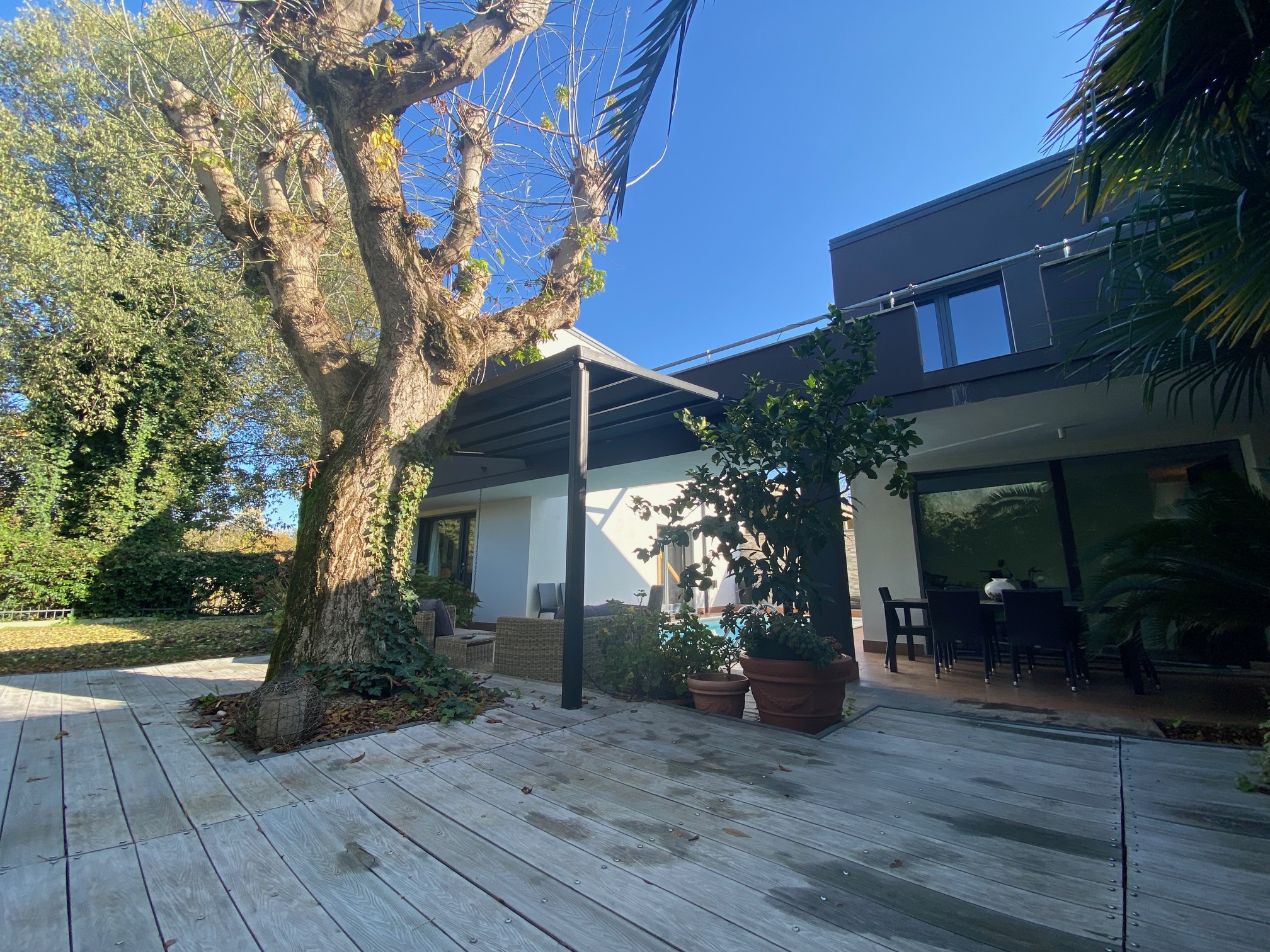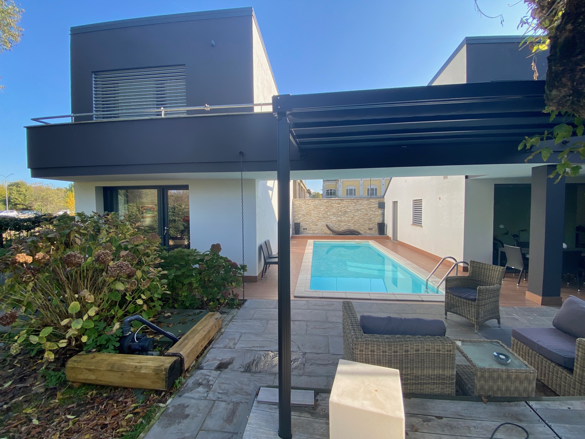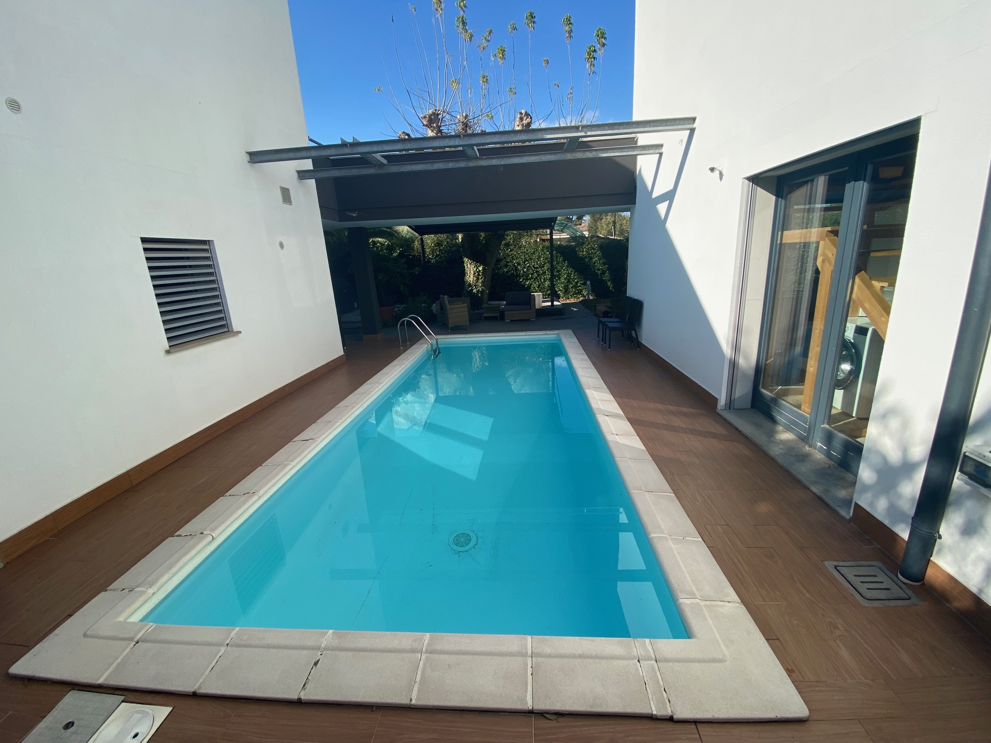 Villa di nuova costruzione indipendente e moderna con giardino esclusivo e piscina in ottima posizione. La villa si compone di 2 unità abitative collegate da una suggestiva terrazza che condividono lo spazio esterno e le utenze. Nella descrizione ci occuperemo della dependance della superficie di 82 mq commerciali. E’ disposta su 2 livelli con al PT zona giorno con cucina a vista, bagno, al PP camera da letto e suggestivo terrazzo di circa 20 mq. L’abitazione è collegata all’abitazione principale con un balcone/terrazzo al PP. Condividono l’ingresso, il garage, la possibilità di parcheggiare 4 auto, lo spazio verde, la piscina, le finiture e le dotazioni tecnologiche. Abitazione indipendente senza spese condominiali, costruita nel 2011 pari al nuovo . Ci troviamo in posizione interna e riservata con i principali servizi raggiungibili a piedi . L’abitazione è dotata di riscaldamento autonomo con doppio impianto per funzionamento solo gas, solo elettrico o ibrido, impianti a norma e certificati, serramenti con vetrocamera, condizionatori, possibilità di valutare arredo . Dotazioni : solare termico per acqua calda sanitaria, impianto fotovoltaico della potenza di 9 Kw, sistema di batterie di accumulo da 9 Kw, colonnina per ricarica auto elettrica. Nella dependance il riscaldamento è ad aria, mentre nell’abitazione principale è a pavimento. Classe energetica “A1” . Ulteriori informazioni solo previo appuntamento in ufficio presso agenzia Stile Libero Immobiliare Via Borgo dei Leoni n. 29 – Ferrara tel. 0532-242754